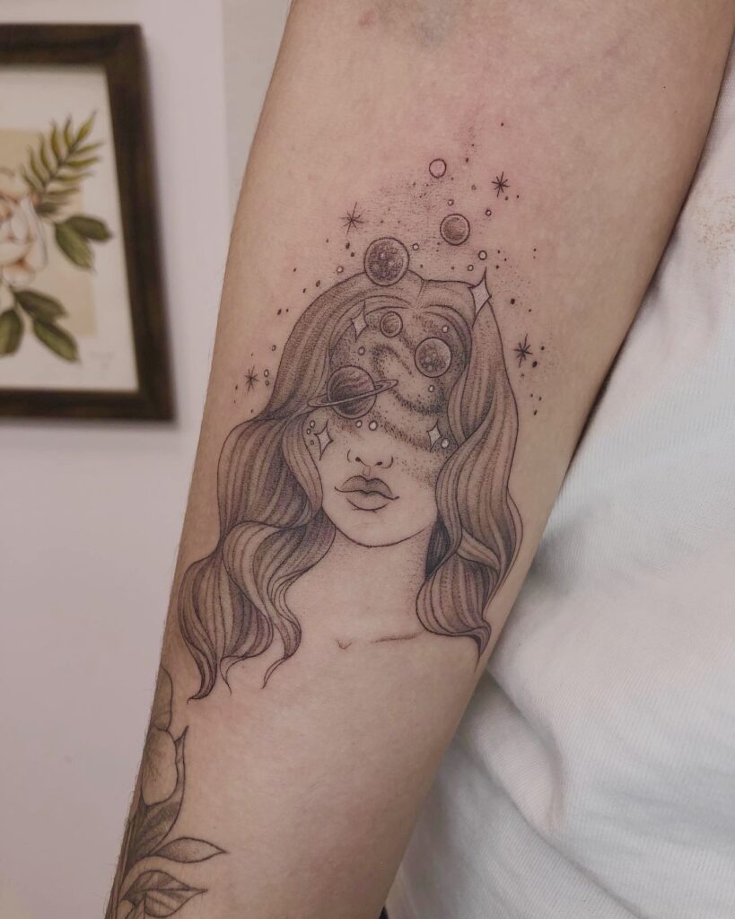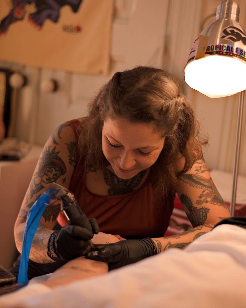 Vejo a tatuagem como um ritual de cuidado — uma forma de marcar a pele com aquilo que nos faz florescer por dentro. Além da pele, também me expresso como artista visual, criando peças que exploram a natureza, o feminino, o tempo e a essência das coisas.